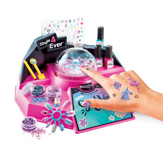 Skab din egen glitterneglekunst. Med dette Nail + Tatoos Salon neglesalonsæt kan du skabe de mest imponerende og trendige negle. Her er virkelig alt negletilbehør, du kunne tænke dig, herunder glitter, neglelak, tatoveringer osv. Fra 8 år. Inkluderer: