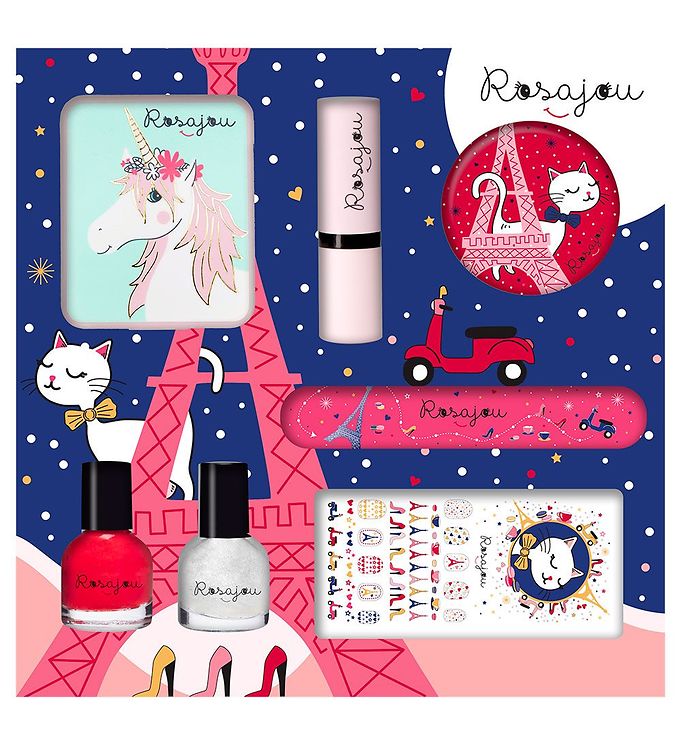 Rosajou Sminkesæt - Blush/Læbestift/Neglelak m.m. - 7 Dele