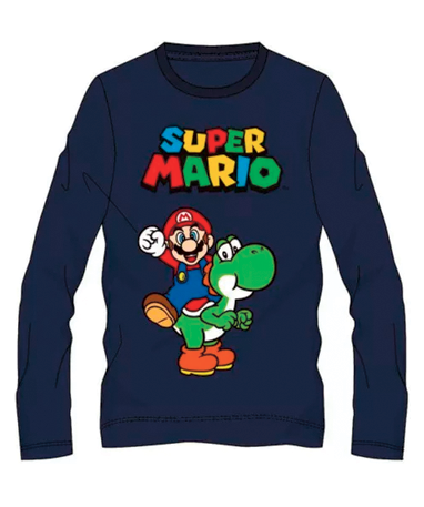 Super Mario blå langærmet t-shirt (4-10år)