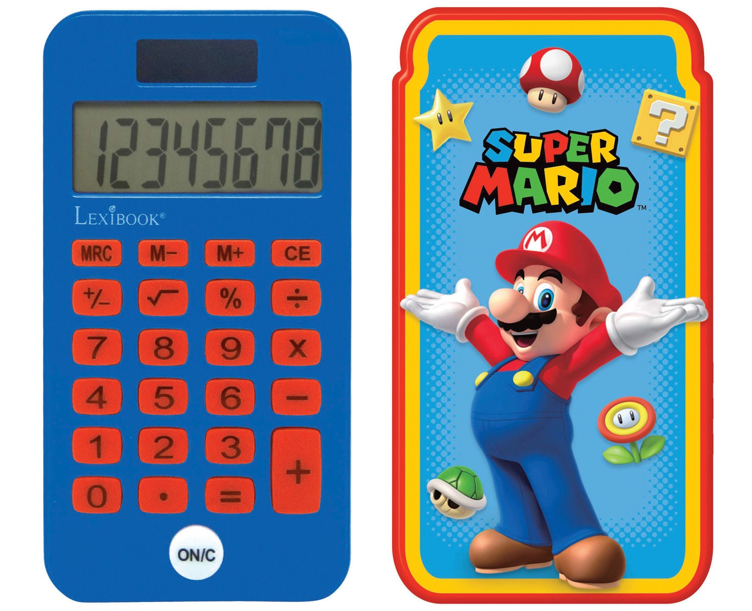 Lommeregner fra Nintendo med motiv af Super Mario. Regnemaskinen har et stort tydeligt display og en holdbar skal. Det behændige format gør , atlommeregneren er let at have med på farten. Displayet støtter hele otte symboler ad gangen, og regnemaskinen har de mest almindelige regnefunktioner og kan udregne mere avancerede regnestykker. Lommeregneren har to strømkilder: Et batteri (medfølger) og en indbygget solcelle. Anbefalet alder: Fra 6 år.