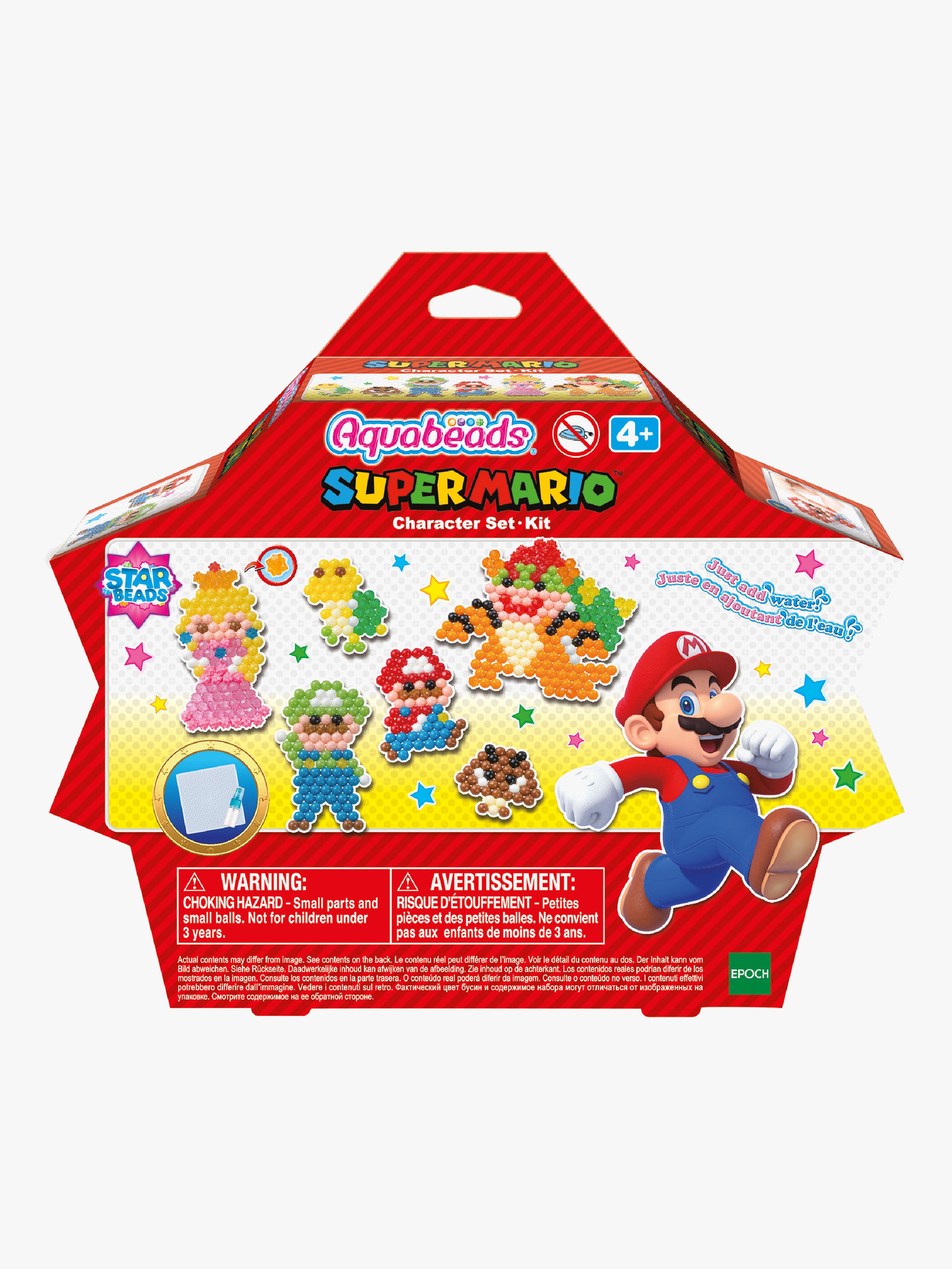 AquaBeads Super Mario Perlesæt giver børn fra 4 år mulighed for at udfolde deres kreative evner. Ved at arrangere perlerne i ønskede mønstre og derefter spraye dem med vand, kan de se deres kreationer forvandles til holdbare figurer, der kan pynte i børneværelset eller gives som gaver.