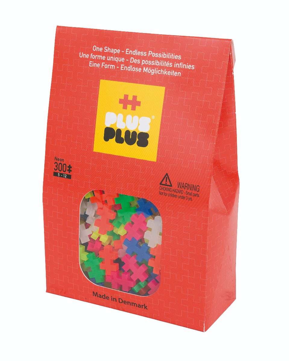 Med Plus Plus Neon kan børn bygge både flade mønstre og tredimensionelle figurer. De unikke neonfarver gør kreationerne ekstra iøjnefaldende og sjove at arbejde med.
