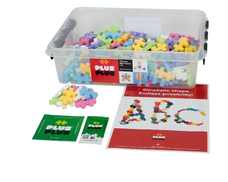 Plus-Plus Education er udviklet udelukkende til skole- og institutionsområdet, derfor kan man kun købe denne serie, via et CVR- eller EAN nummer.Skøn bunke af de flotte Plus-Plus BIG i pastel farver. 200 stk. i en robust opbevaringskasse med låg.