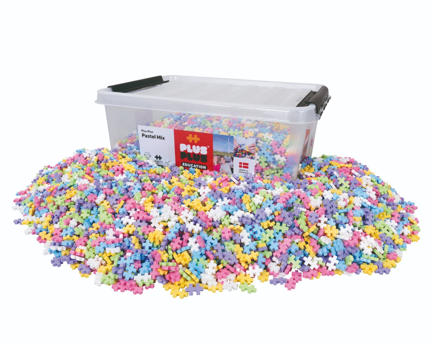 Plus-Plus Education er udviklet udelukkende til skole- og institutionsområdet. Derfor kan man kun købe denne serie via et CVR- eller EAN nummer.Kæmpe, solid kasse med låg fyldt med Plus-Plus i pastelfarver. Der er hele 6000 stk, så der kan bygges både helt små og virkelig store konstruktioner og figurer.Der medfølger et lækkert inspirationshæfte.