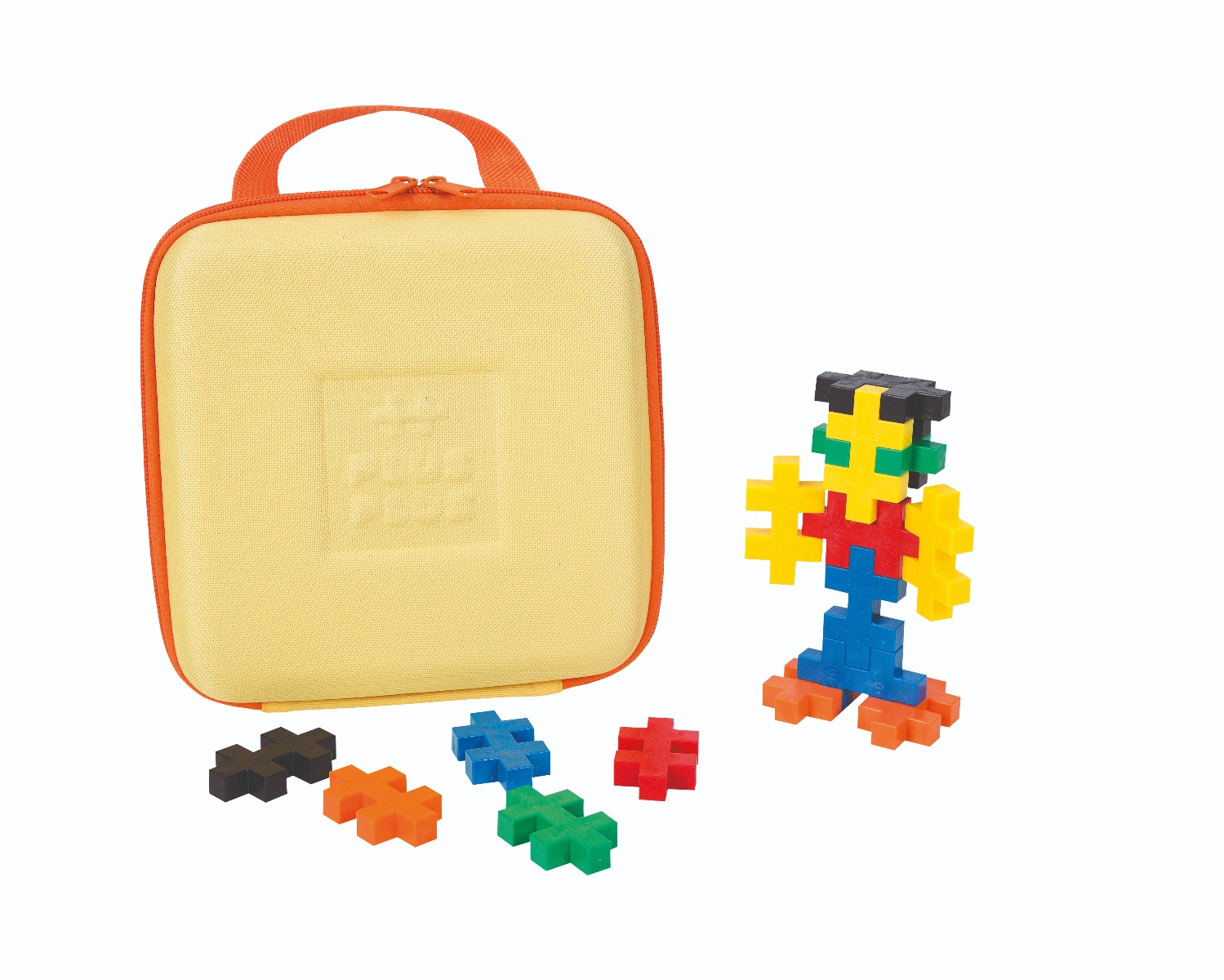 En praktisk rejsetaske med lynlås i siden, håndtag og smudsafvisende tekstil på ydersiden.I tasken er der 15 stk Plus-Plus® BIG klodser, så dit barn kan bruge sin finmotorik og sine kreative evner på farten. Klodserne BIG måler 3x5 cm. Tasken måler 19x19 cm.