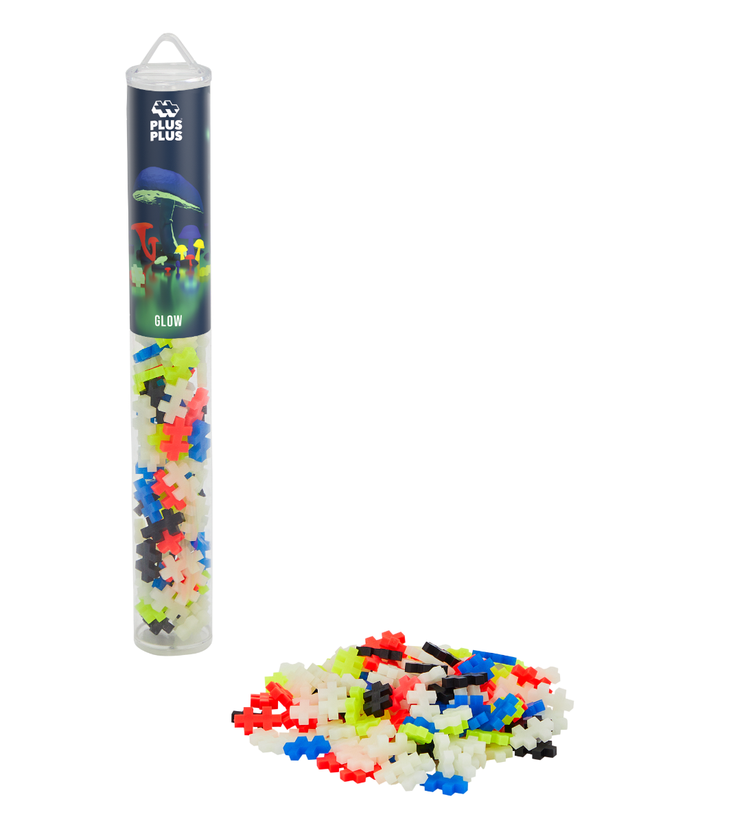 Når dit barn udsætter disse Plus-Plusser for en lyskilde, vil de lyse, når lyset slukkes.100 stk af de små Plus-Plusser på 1x2 cm.