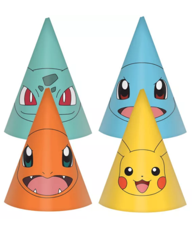 Pokémon fødselsdagshatte - 8 stk.