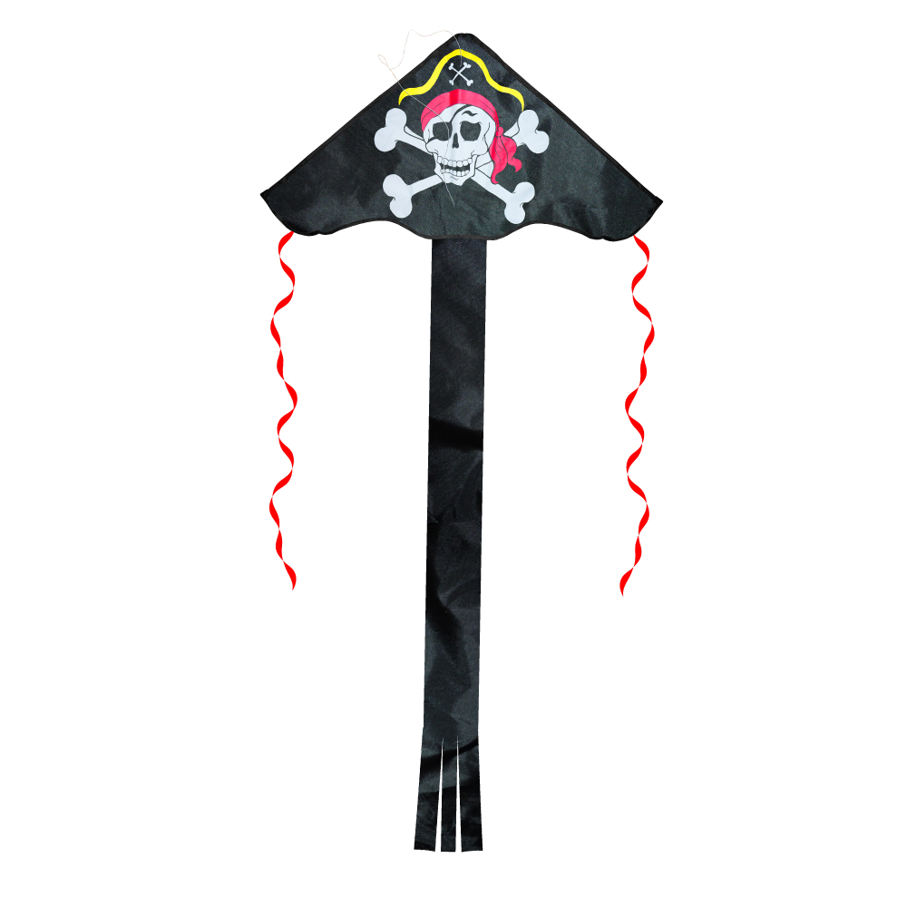 Super fed piratdrage, med lang sort hale, der spiller i vinden. Splitte mine bramsejl, nu skal vi også være luftpirater. Denne skrækindjagende drage skal nok tiltrække nysgerrige blikke. Find et åbent landskab og flyv. Glasfiberstænger 4mm Størrelse: 85 x