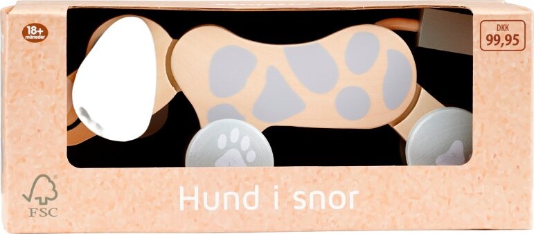 Rigtig fin legetøjshund på hjul fremstillet i træ, som dit barn vil elske at trække rundt ved hjælp af snoren. Designet med fine, sarte farver og er anbefalet til børn fra 18 måneder og op....