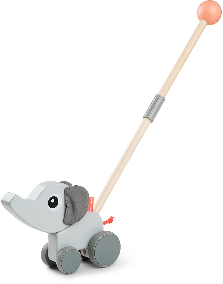 Træklegetøj fra Done By Deer med et sødt elefantmotiv. Perfekt til udvikling af barnets finmotorik. - Let for små hænder at gribe om. - Elphees hoved vipper, og kroppen bevæger sig op og ned. - Bløde hjul. - Mål: H 40 x B 6,5 x L 40 cm. - CE-mærket. - Anbefalet alder: Fra 12 måneder. - Schima-træ, MDF, polyester.