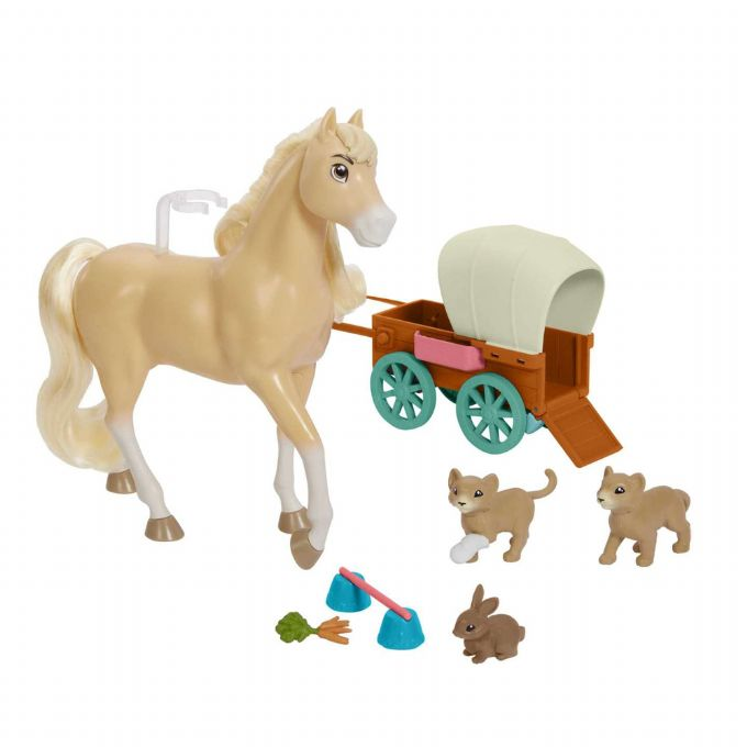 Vær en del af venskabet, tapperheden og eventyret med DreamWorks Spirit & Friends! Børn kan lege vores fortællingsøjeblikke med Chica Lindas Vogntur! Med hjælp fra en dyre-redningsvogn, returnerer Chica Linda en baby bjergløve til dens taknemmelige mor i