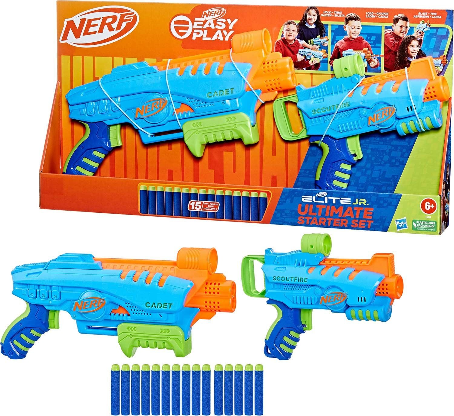 Blaster fra NERF med 15 medfølgende skumpile. Blasteren har et fleksibelt ladehåndtag: tryk på aftrækkeren og affyr pilen. Kommer i et sæt af to. Perfekt til leg både indendørs og udendørs! Beskyttelsesbriller anbefales (medfølger ikke). CE-mærket. Anbefalet alder: Fra 6 år.