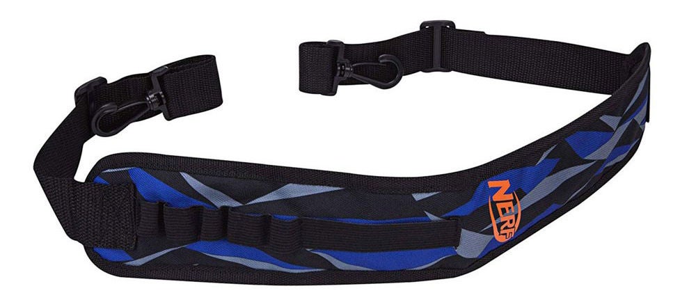 En kombineret skulderem og ammunitionsopbevaring til dit NERF-blaster. Remmen giver dig ekstra støtte når du leger. Remmen kan fyldes med magasiner og ammunition til din blaster. Remmen har plads til to ekstra magasiner og fem Nerf-pile. Pile og magasin medfølger ikke. Anbefalet alder: Fra 8 år.