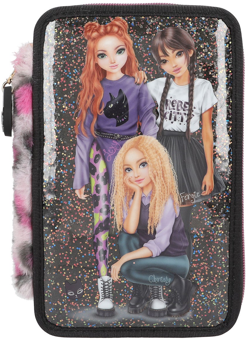 Fint tredelt penalhus fra TOPModel med et komplet skrivesæt og sjovt tilbehør. Perfekt til kreative aktiviteter. - Indeholder: 1 penalhus, 18 farveblyanter, 18 tusser, 2 blyanter, 1 saks, 1 limstift, 1 blyantspidser, 1 lineal, 1 viskelæder. - Tre rum. - TOPModel-motiver. - CE-mærket. - Anbefalet alder: Fra 8 år. - PES.