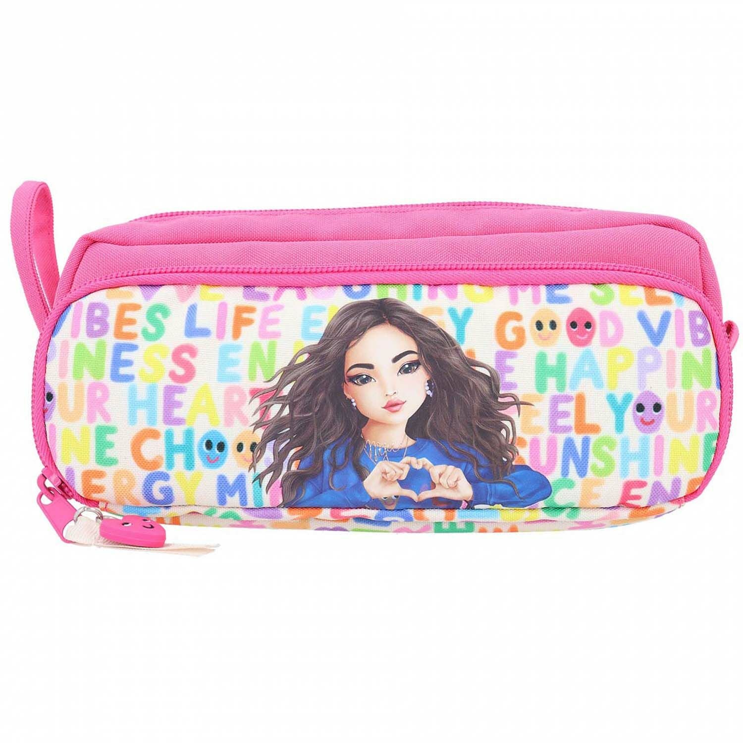 Økovenligt SELFLOVE penalhus fra TOPModel i genbrugsmateriale, fremstillet af PET-flasker med masser af plads til mange ting. Det har et sejt tryk med inspirerende feel good-ord og et gennemsigtigt rum på bagsiden. Dette produkt er fremstillet af genbrugsmaterialer. CE-mærket. Anbefalet alder: Fra 4 år.