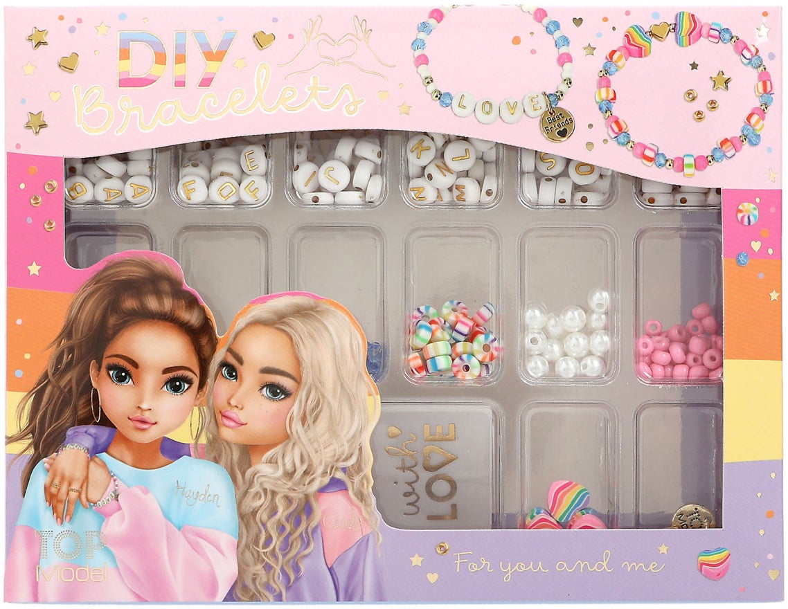 Perlearmbåndsæt fra TOPModel med farverige perler til at skabe dine egne accessoires med. Perfekt til kreative stunder. - Indeholder: Farverige perler, bogstavperler, metalcharms, elastisk smykketråd og brugsvejledning. - Lav dine egne smukke smykker. - Farverigt design. - Kun fantasien sætter grænserne. - CE-mærket. - Anbefalet alder: Fra 5 år. - Plastik, glas, metal.