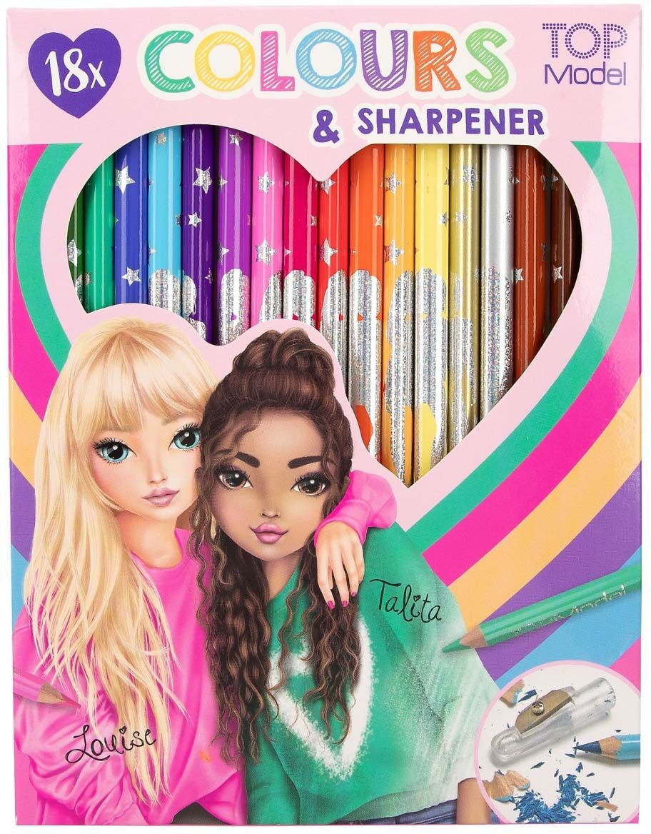 Sjove farveblyanter fra TOPModel med en praktisk blyantspidser. Perfekte til kreative stunder. Indeholder 18 farveblyanter. Anbefalet alder: Fra 4 år.