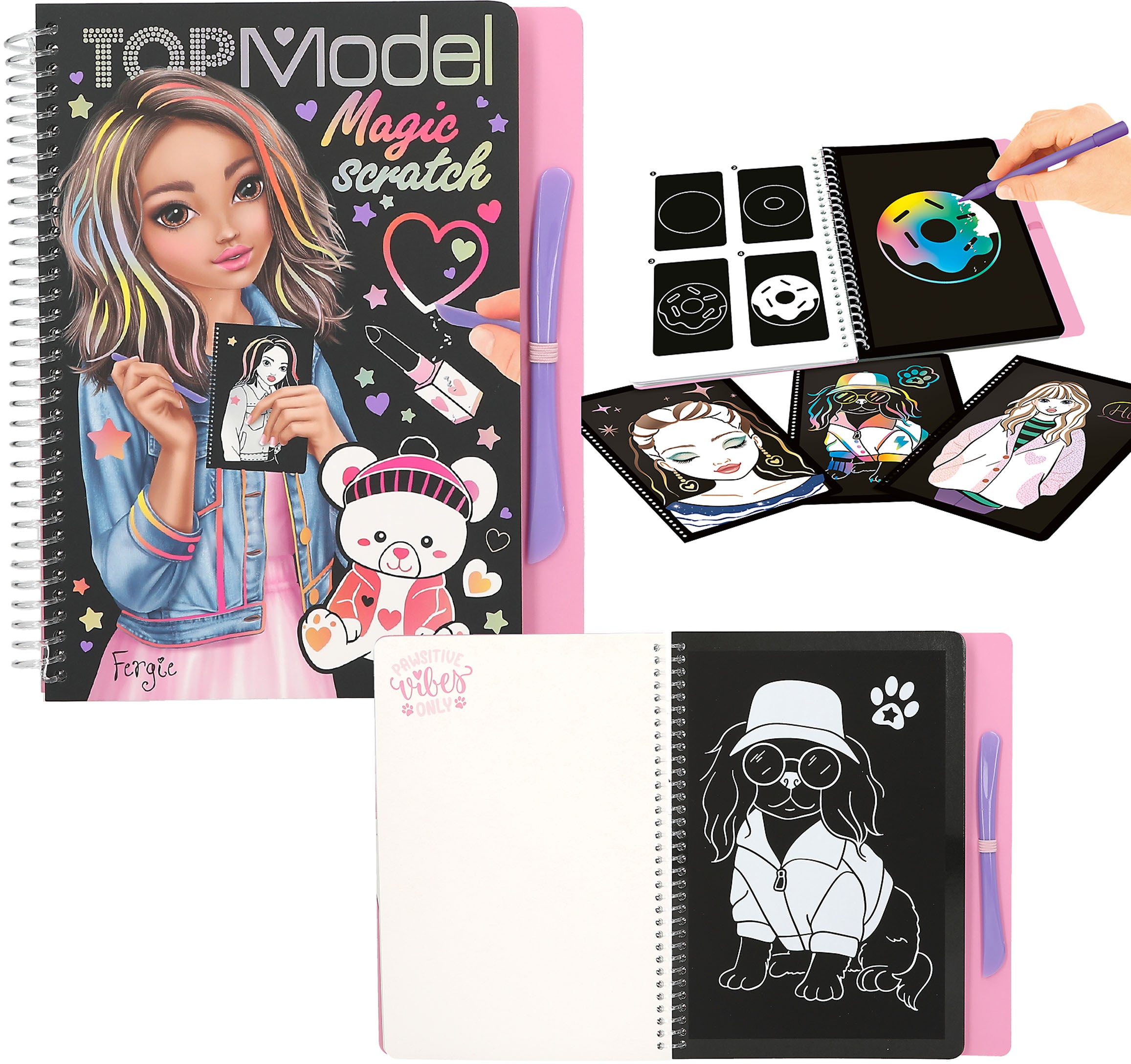 Scratch Book fra TOPModel med magiske egenskaber, som dit barn kan udforske. Perfekt til kreative stunder. - Indeholder: 1 Scratch Book, 1 tus, 8 skabeloner. - Brug den medfølgende pen til at afsløre de gemte, farverige kunstværker. - Perfekt til rejsen. - Slip kreativiteten løs. - CE-mærket. - Anbefalet alder: Fra 4 år. - Papir, plastik.