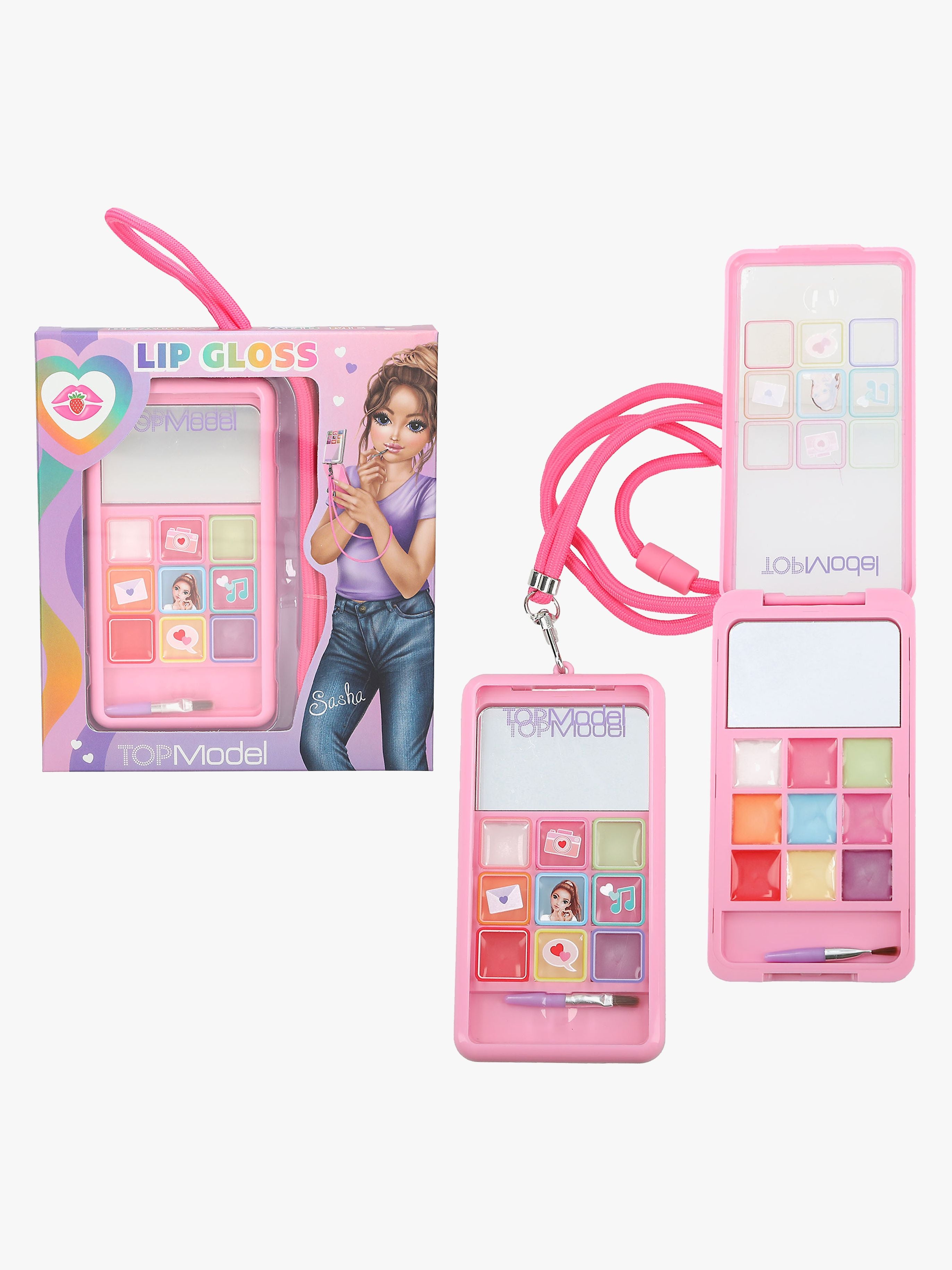 Lipgloss fra TOPModel med en sjov emballage i form af en mobiltelefon. Perfekt til kreative aktiviteter. - Lipgloss i 9 smukke farver. - Jordbærduft. - Har en rem til at hænge om halsen. - Læbepensel inkluderet. - Anbefalet alder: Fra 5 år.