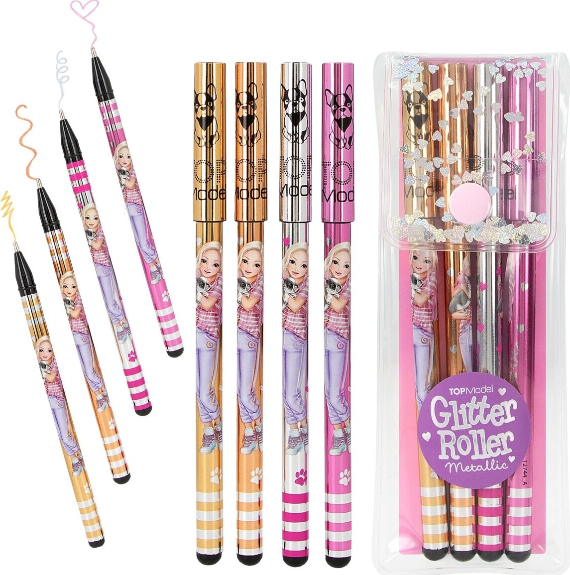 Top Model - Glitter Roller Gel Pens - Metallic - Guld, Sølv, Bronze, Rosa Guld