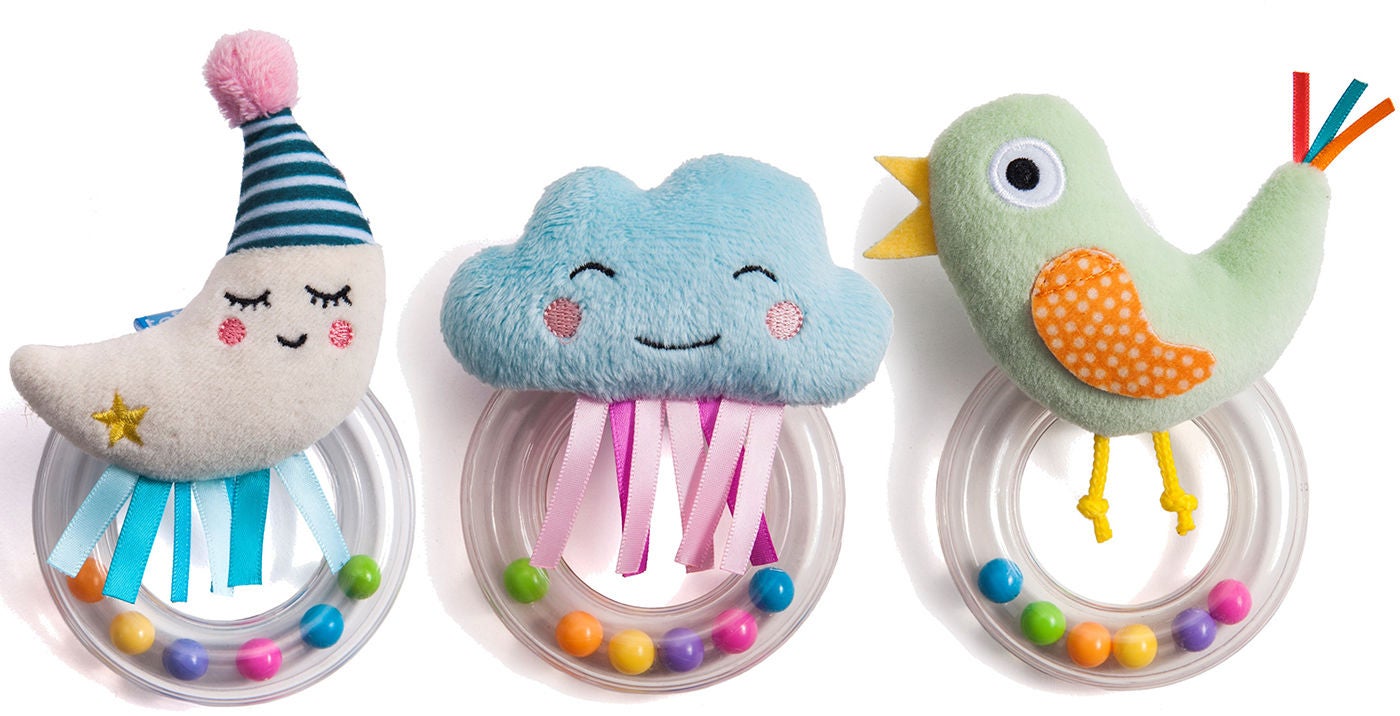 3-pak med rangler fra TAF Toys. Rangler er lette for din baby at gribe fat i og ryste. De hjælper med at udvikle dit barns sanser og finmotorik.