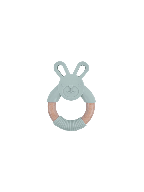 Kanin Bidering, Olivengrøn Fin kanin bidering til de mindste. Bideringen er lavet af silikone og træ, og er perfekt til babys ømme gummer når tænderne er på vej. Alder 6 mdr+