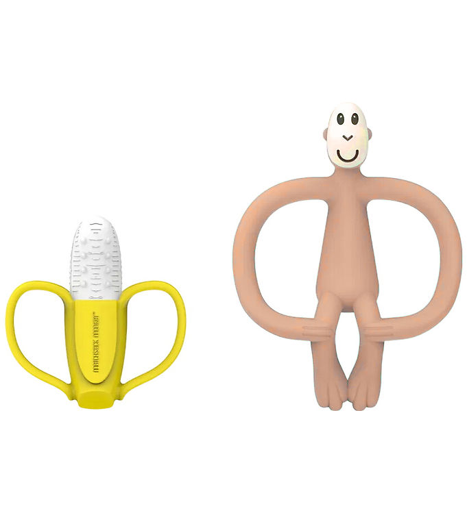 Matchstick Monkey bideringe er det perfekte valg til din lille, der oplever tandfrembrud. Denne 2-pak indeholder en bidering formet som en sød abe og en farverig banan, begge i en skøn pink farve, der vil fange dit barns opmærksomhed. Bideringene er designet med fokus på både funktionalitet og leg, hvilket gør dem til en uundgåelig tilføjelse til dit barns legetøj. Materialet er sikkert og BPA-frit, så du kan være tryg ved, at dit barn kan tygge på dem uden risiko. Den bløde overflade masserer tandkødet og lindrer smerter, når de første tænder bryder frem. Udover at være funktionelle, stimulerer bideringene også dit barns sans for farver og former, hvilket gør dem til en ideel del af tidlig udvikling. Matchstick Monkey bideringe er lette at holde for små hænder, og det sjove design opfordrer til aktiv leg. De kan også nemt rengøres, så du kan holde dem hygiejniske og klar til brug. Giv dit barn den bedste start med disse sjove og praktiske bideringe, der både kan lindre ubehag og underholde. Gør tandfrembrud til en leg med Matchstick Monkey!