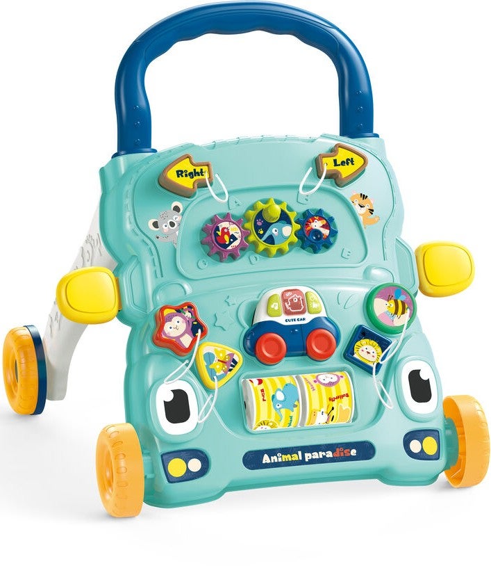 Fin gåvogn fra PlayGro. Perfekt når den lille skal lære at gå. - Flere legeområder. - Egnet til børn, der er ved at lære at gå. - Flere knapper til at trykke på og udforske. - Lyd- og lyseffekter. - Perfekt til træning af former og farver, hånd-øje-koordination og finmotorik. - CE-mærket. - Anbefalet alder: Fra 2 år. - Batteri: 2 x AA (medfølger ikke).