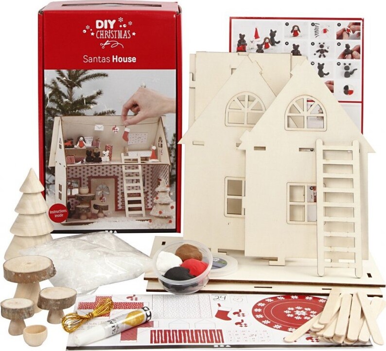 Julepynt Lav Selv - Julemandens Hus - Samlesæt I Træ - Diy Christmas