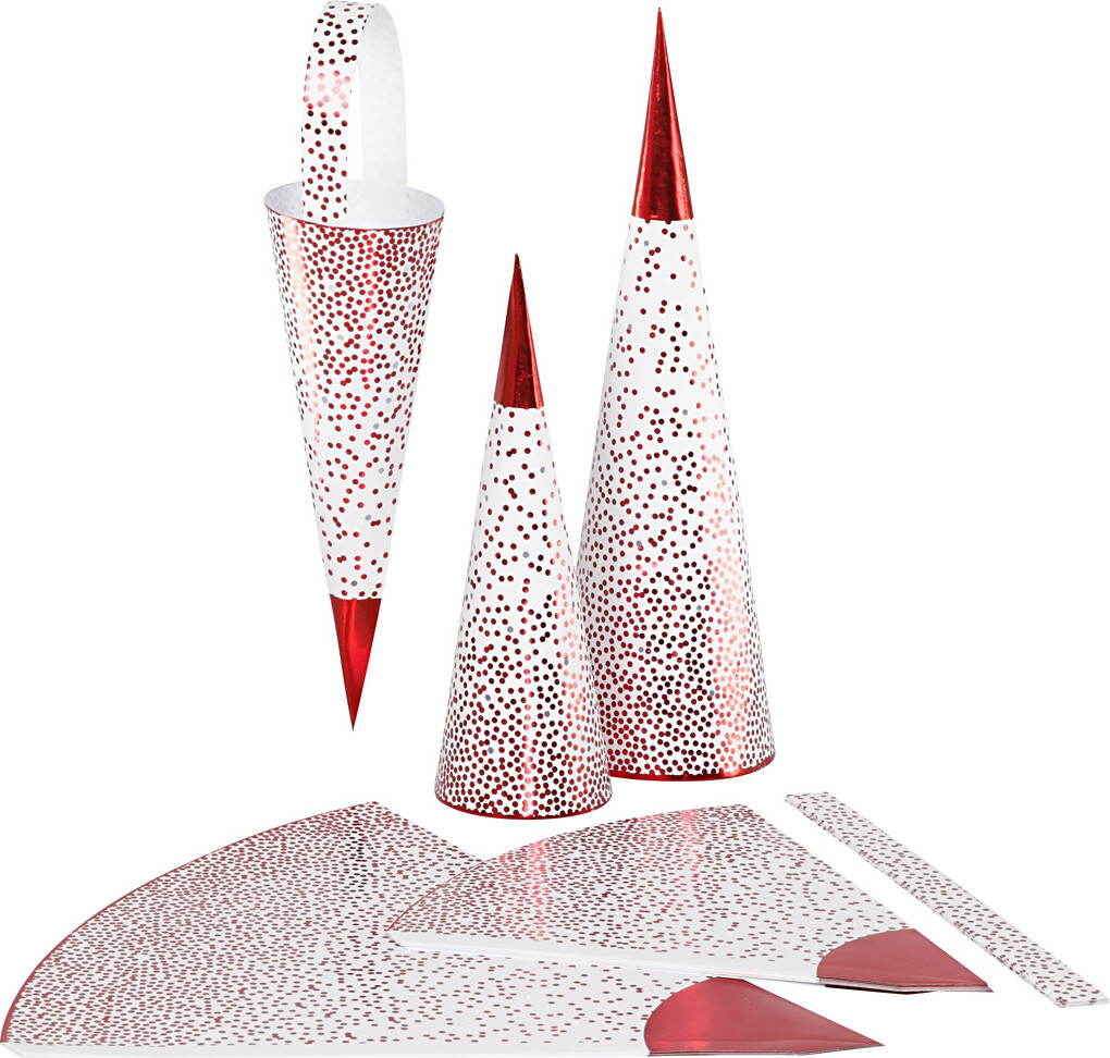 Saml-selv kræmmerhuse af papir med design i metalfolie og små udstansede huller. Samles til kegler og bruges med hank til ophæng og uden hank fx som dekorative lampeskærme på LED lys. Pk. med...