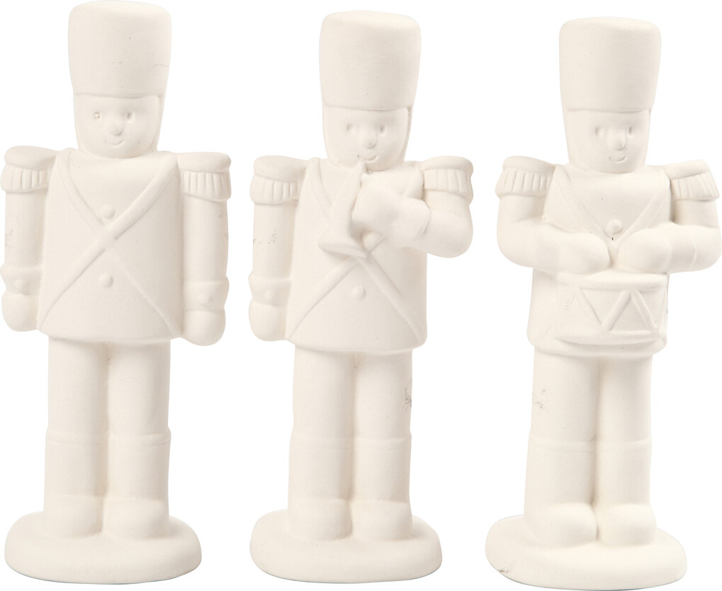 Et sæt med 3 søde nødeknækkere til dekorering! De søde nøddeknækkere er lavet af ubehandlet terrakotta. De står med hver deres instrumenter i rigtig nødeknækkerstil. Leveres i en fin sort...