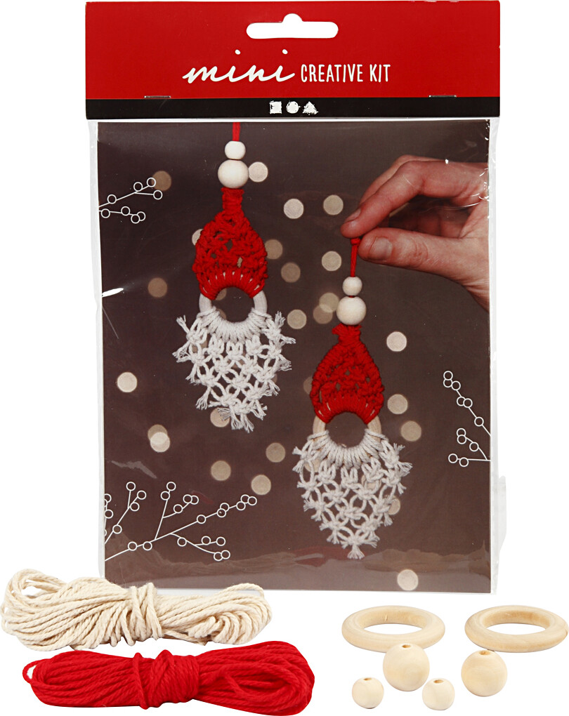 Dette mini DIY kit til macramé nisser er en sjov og nem måde at tilføje lidt julestemning til dit hjem. Sættet inkluderer alt hvad du behøver, for at skabe to smukke, knyttede macramé nisser....