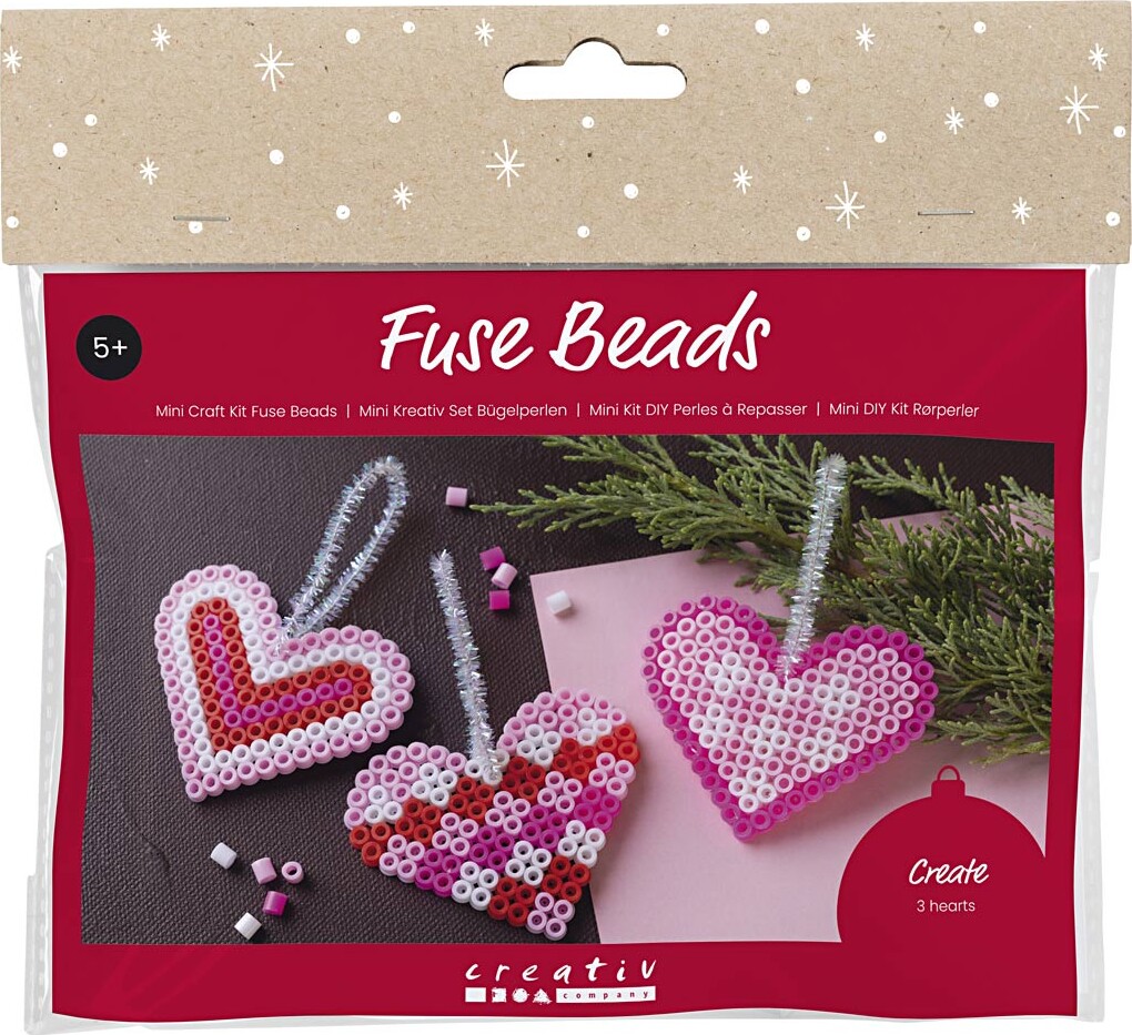 Mini Diy Kit Rørperler - Julehjerter - Pink - Lys Pink - Primær Rød - Hvid - 1pk.