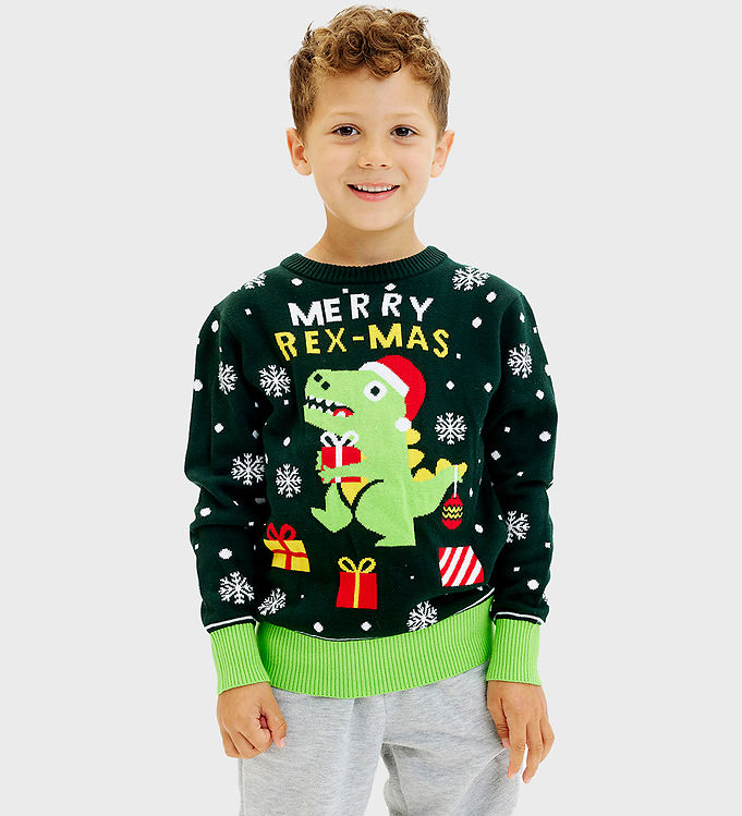 Jule-Sweaters Bluse - Sweet Christmas Dino - Grøn