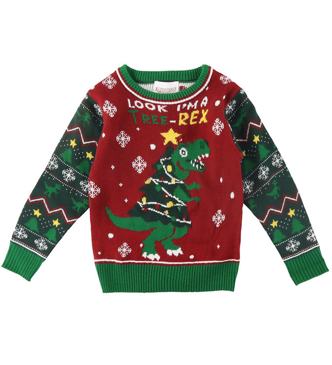 Jule-Sweaters Bluse m. Lys - The Tree-REX Sweater - Rød/Grøn