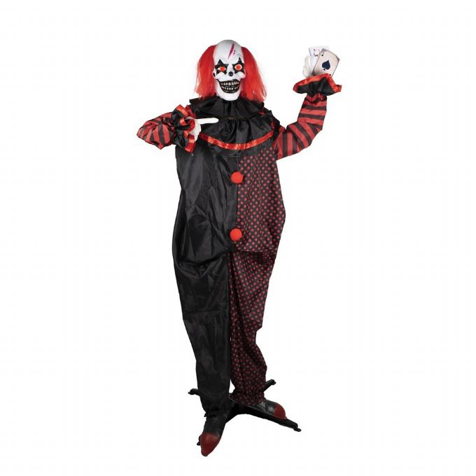 En dobbelt hovedet klovn, der er animeret, er en skræmmende og uhyggelig dekoration, der kan bruges til at skabe en dyster og uhyggelig atmosfære ved forskellige begivenheder, især ved halloween eller skræmmende fester.