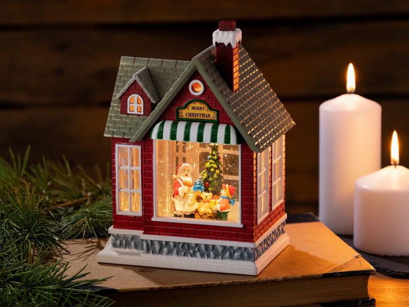 Når juleaften nærmer sig med stormskridt, og plusgraderne stadig er en kendsgerning, kan du skabe en øjeblikkelig julestemning med en lysende juledekoration med glimmer. Huset bebos af selveste julemanden, som hygger sig ved siden af juletræet, mens der hvirvler glimmer rundt om ham.