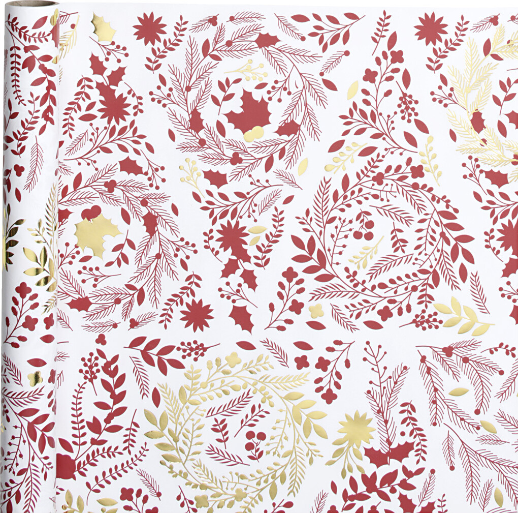 Gavepapir - Juletræer - Guld Rød Hvid - B 50 Cm - 80 G - 3 M