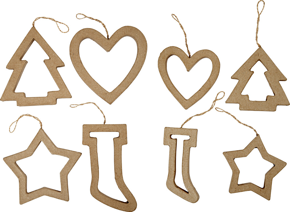 Dette smukke juleophængssæt indeholder 24 forskellige håndlavede juleornamenter i papmaché....