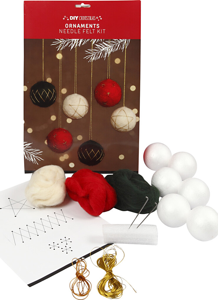 Dette materialssæt tilbyder dig alt, hvad du behøver for at skabe seks nålefiltede julekugler,...