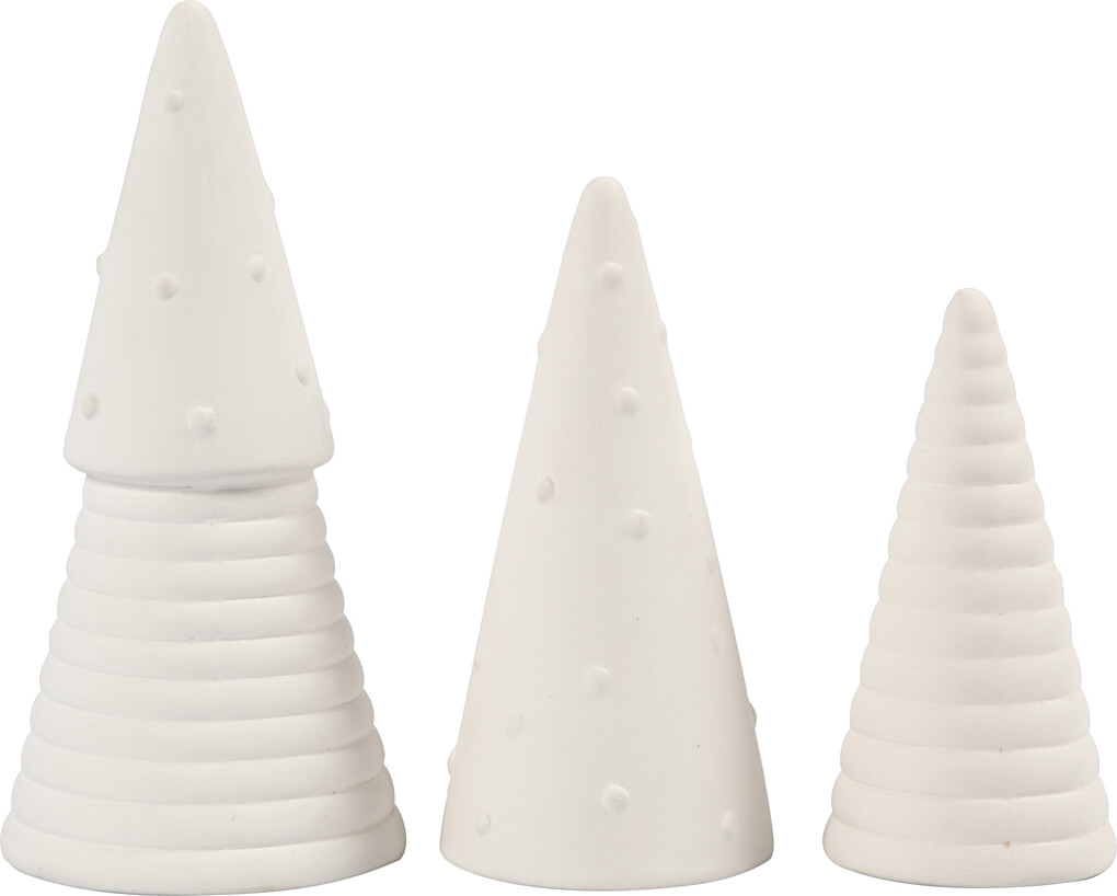 Juletrĉer - Julepynt - Terracotta - H 10+12+15 Cm - Hvid - 3 Stk