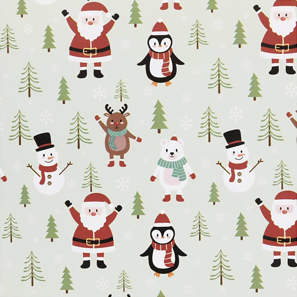 Gavepapir - Julemand - Snemand - Rensdyr - Isbjørn Og Pingvin - B 50 Cm - 80 G - Isblå - 5 M