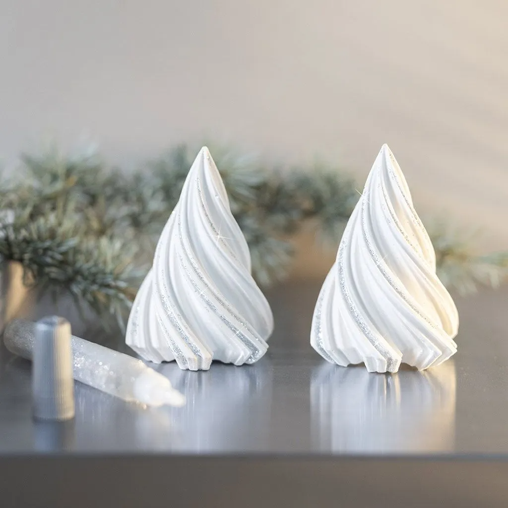 Her er et sæt med alt du eller dit store barn skal bruge til at støbe to hvide juletræer, som bagefter kan få glimmer på og stå og pynte eller måske blive givet i gave. Vejledning følger med, så du kan læse, hvordan du skal blande støbemassen med vand og røre det til en ensartet masse inden det skal i formen. Dér skal det hærde mindst et par timer og så komme ud og blive pyntet med glimmerlim. Støbeformen kan du genbruge, hvis du køber mere resin. Indhold: Resin-støbemix, støbeform og glitterlim.