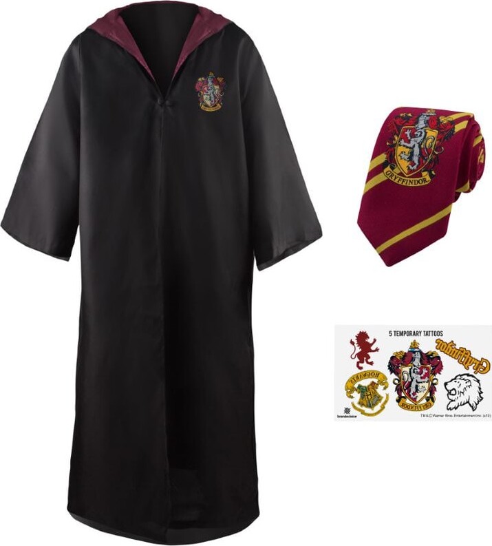 Harry Potter kappe med trykt Gryffindor emblem, slips og 5 små tatoveringer. Det perfekte Harry Potter kostume til enhver fan. Specifikationer:  Slips: 100% polyester twill Kappe: 100% polyester...