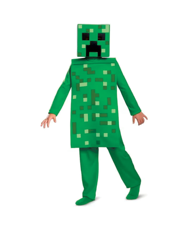"Minecraft Creeper Kostume" er det perfekte valg for børn, der elsker at udklæde sig som deres yndlingskarakterer fra "Minecraft". Kostumet består af en grøn dragt med kraftige 3D-mønstre, der gør det til et troværdigt Creeper-kostume. Dragten er lavet