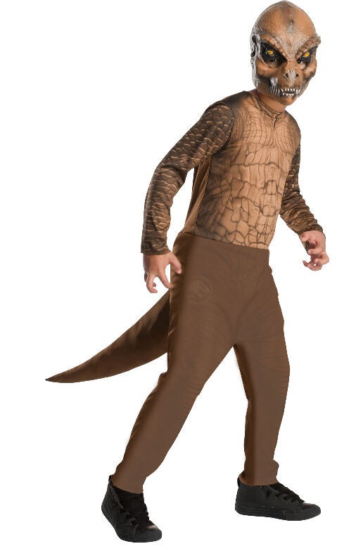 Kostume fra Jurassic World med karakteristiske detaljer så man kan klæde sig ud som en Tyrannosaurus Rex-dinosaur. Det har en hellang heldragt med en hale og en tilhørende maske. Perfekt til udklædning og rolleleg. Indeholder: 1 heldragt, 1 maske. OBS! Skoene medfølger ikke. CE-mærket. Polyester.