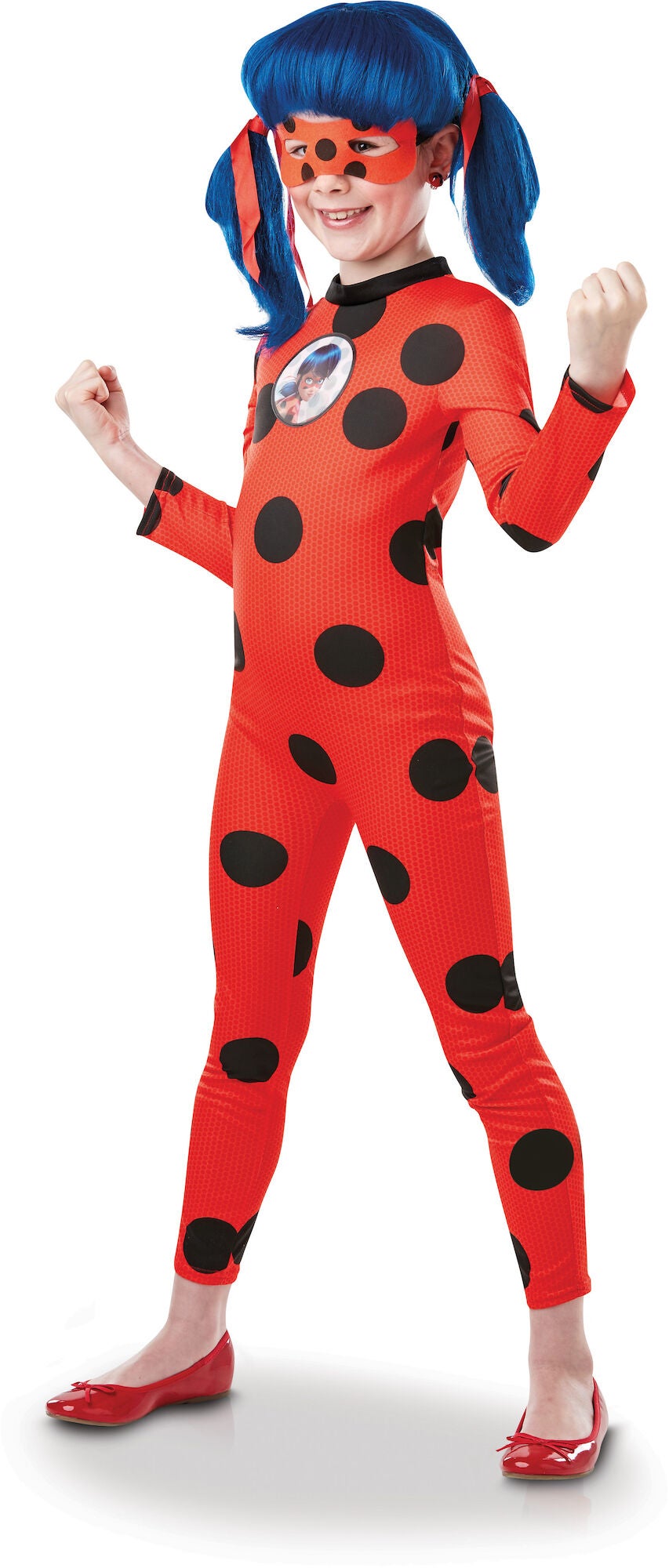 Kostume fra Miraculous med et rødt, prikket kostume med et print på forsiden. Det har en medfølgende, autentisk maske for øjnene. Perfekt til både hverdag og fest. CE-mærket. Indeholder: heldragt og maske. Officielt licenseret produkt. OBS! Paryk sælges separat. OBS! Skoene medfølger ikke.