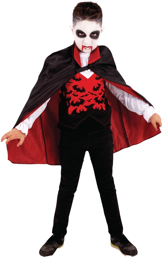 Vampyr kostume i str 3-4 år med Kappe med velcro lukning. Ansigtsmaling købes seperat