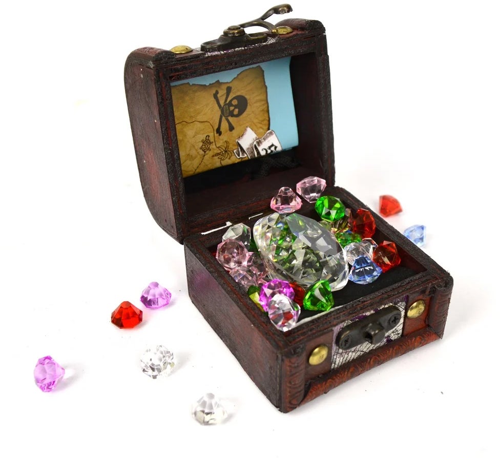 Sej skattekiste fra Robetoy med en masse fine skatte indeni. Perfekt til timevis af fantasifuld leg. - Indeholder: 1 skattekiste, 37 diamanter, 1 skattekort og en fløjlspose. - Metal-lås. - Opbevaringstaske medfølger. - Detaljeret design. - CE-mærket. - Anbefalet alder: Fra 3 år. - Træ, metal, glas, pap.