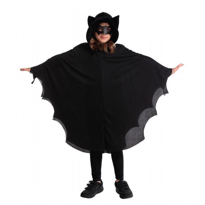 Halloween Flagermusdragt med hætte leveres med en øjenmaske. Perfekt til Halloween eller en skræmmende eller uhyggelig fest. Passer til børn i alderen 7-9 år, højde: 117-134 cm